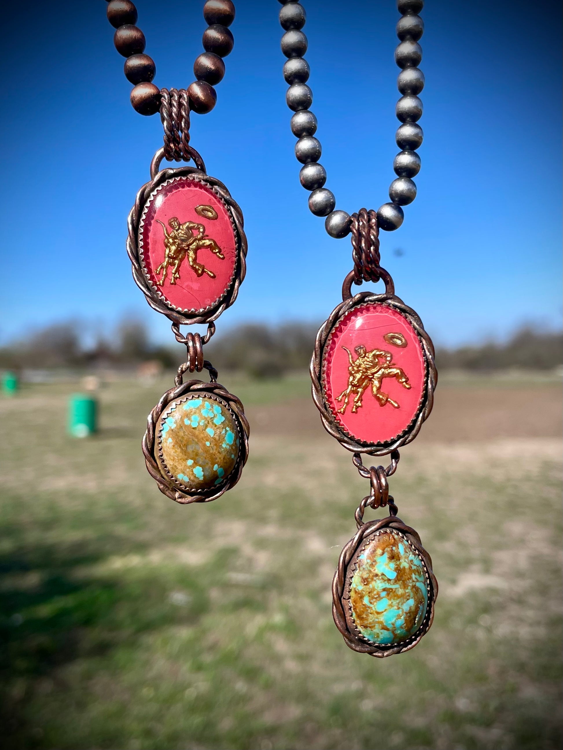 Copper Steer Wrestler Pendants
