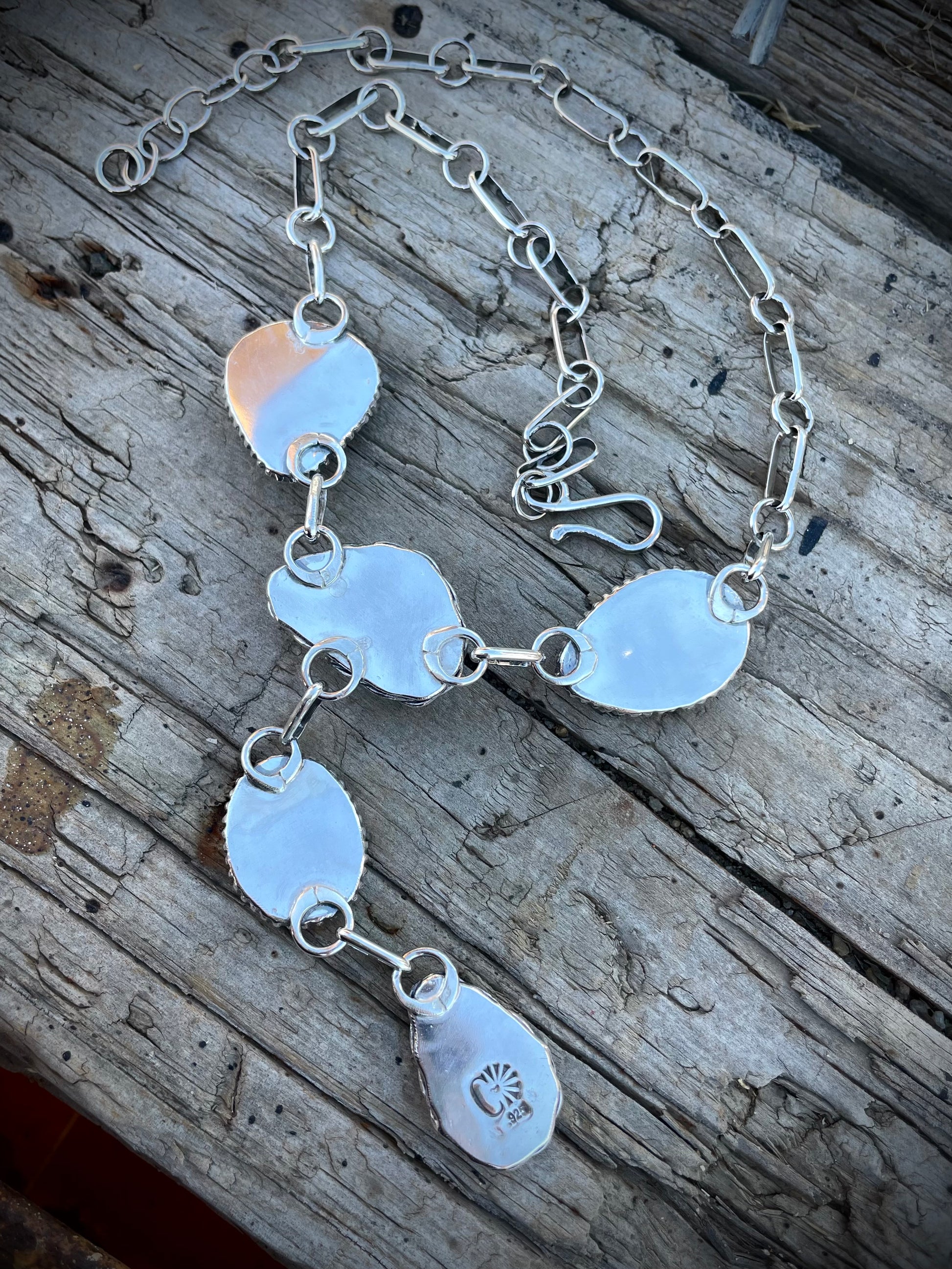Always hand set in sterling and fine silver, stamped .925 and my maker’s mark. Every single link and hook are all hand made by