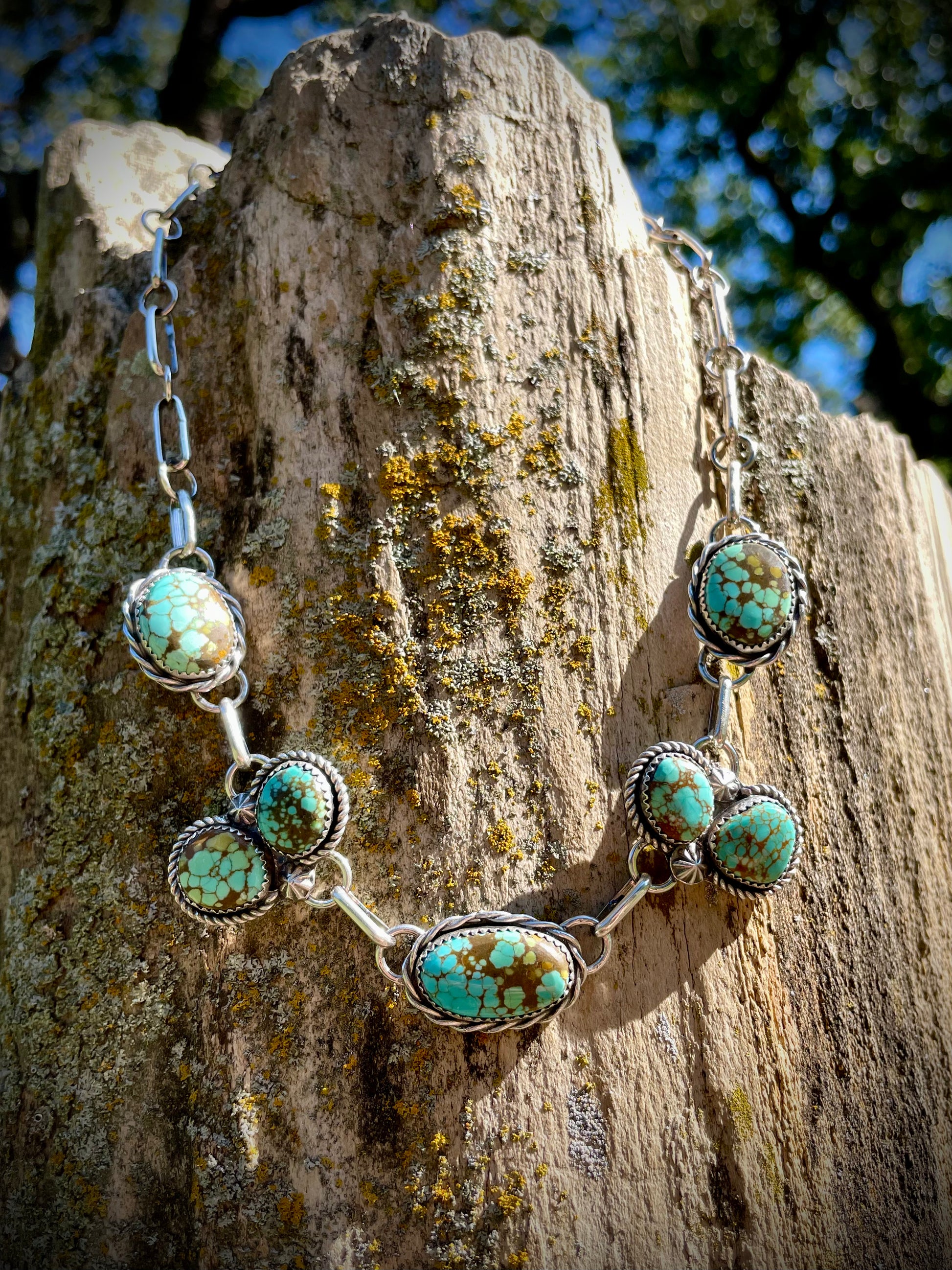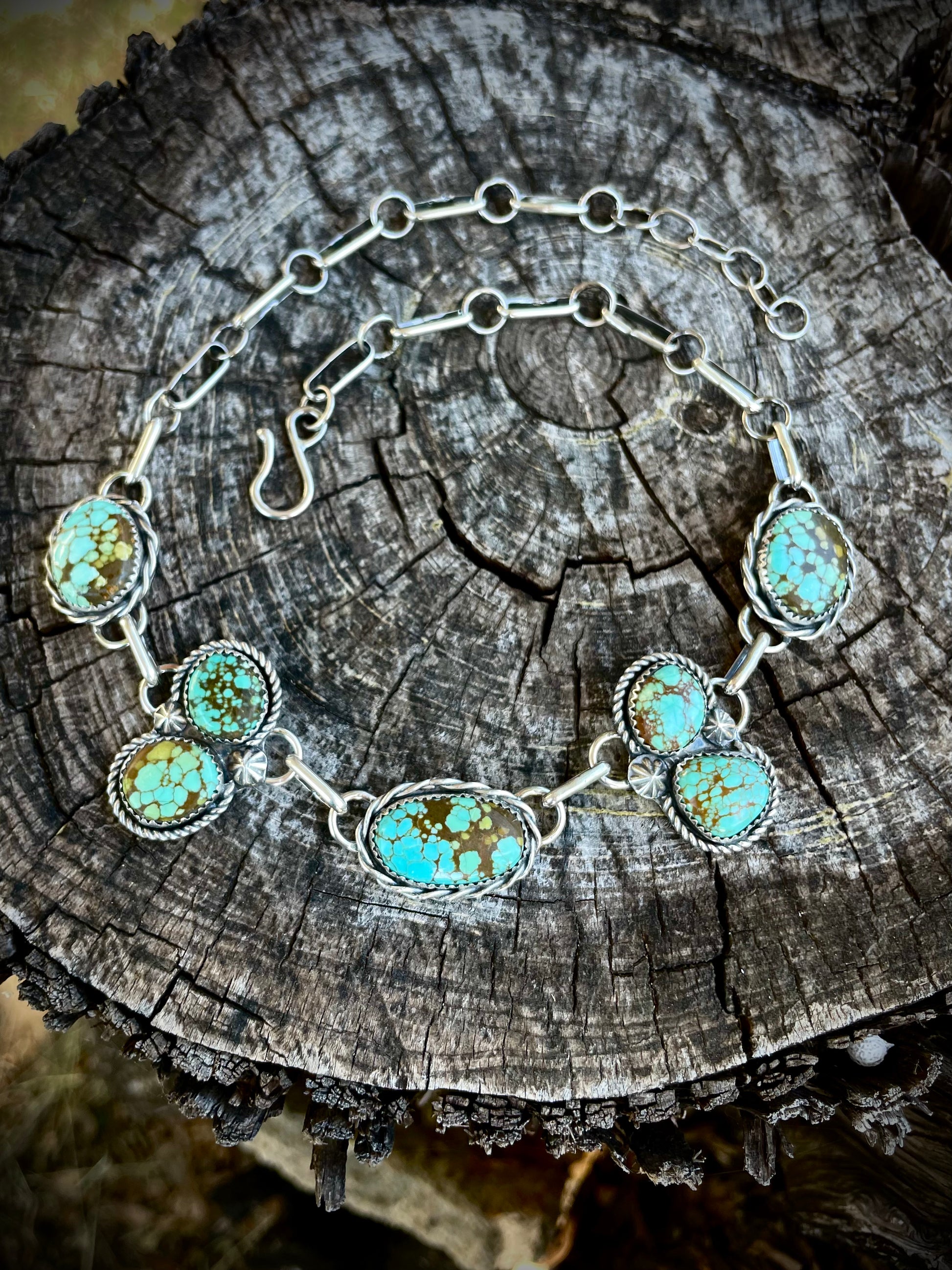 Always hand set in sterling and fine silver, stamped .925 and my maker’s mark. Every single link and hook are all hand made by me 🩵